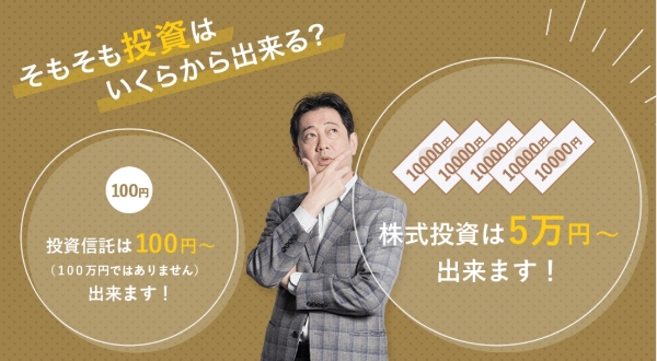 講座では「投資信託は○○を見ることです」「元本保証でで9.5%を取る方法は○○の時に○○を買うことです」など超具体的な話を無料で聞けるので株に興味があって迷われている方は聞いておいて損はないです。